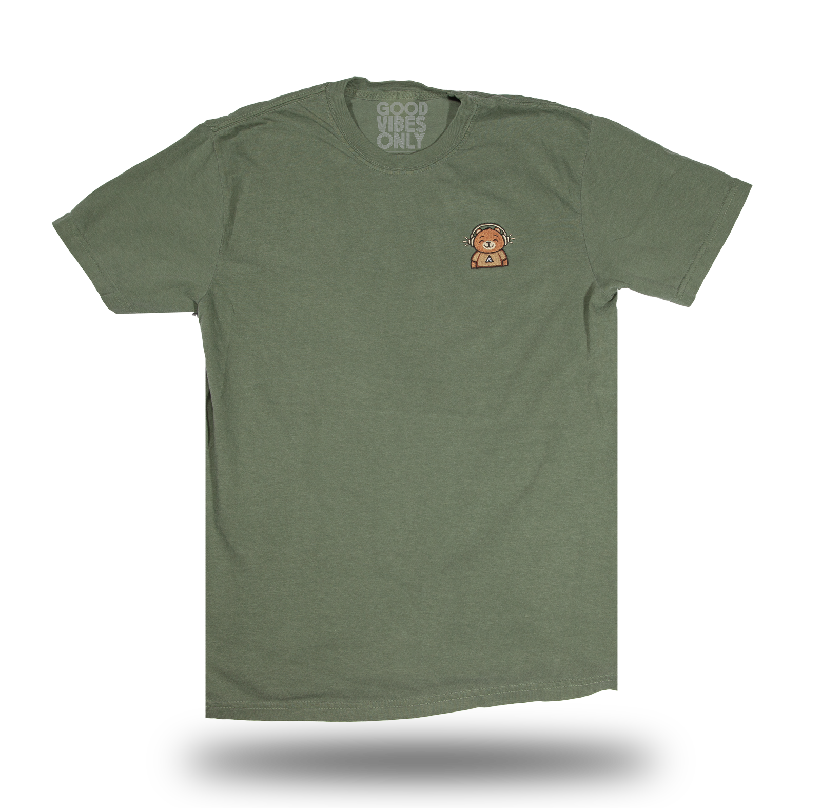 Signature Good Vibes Bear front and back silk screen print for quality and durability.